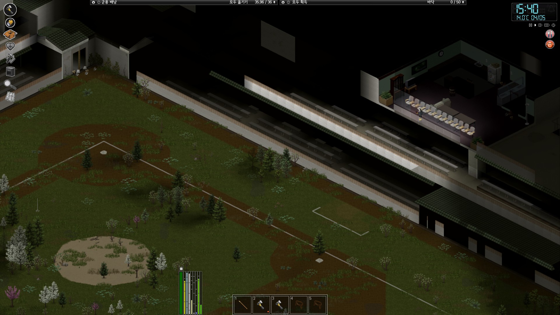 아쉽지만 내부 구장은 이미 수목으로 뒤덮인 상황에 사방으로 입구가 개방된 상태라 안전가옥 구축 노력에 비해 그다지 실익은 없을 것 같았다. 하지만 야구장 한 가운데 주택 건설하기는 그 나름대로 재미는 있을 것 같다.