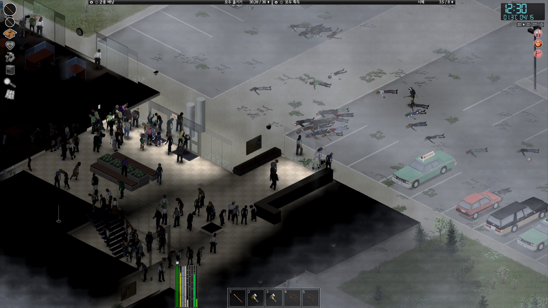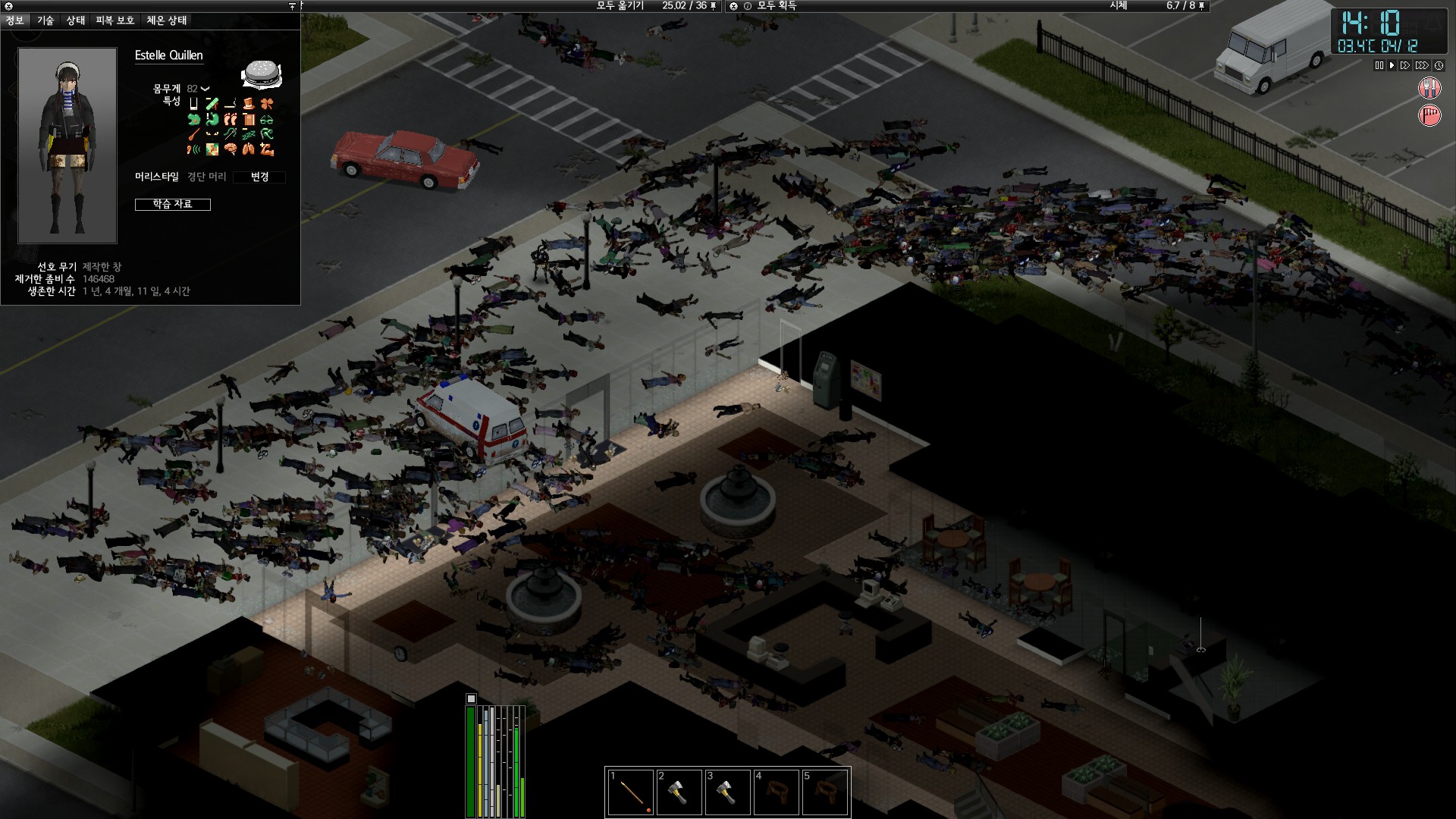 몰 서부 아파트의 좀비들을 잡다보니 깨끗했던 오하이오몰 주차장이 엉망이 되어간다.